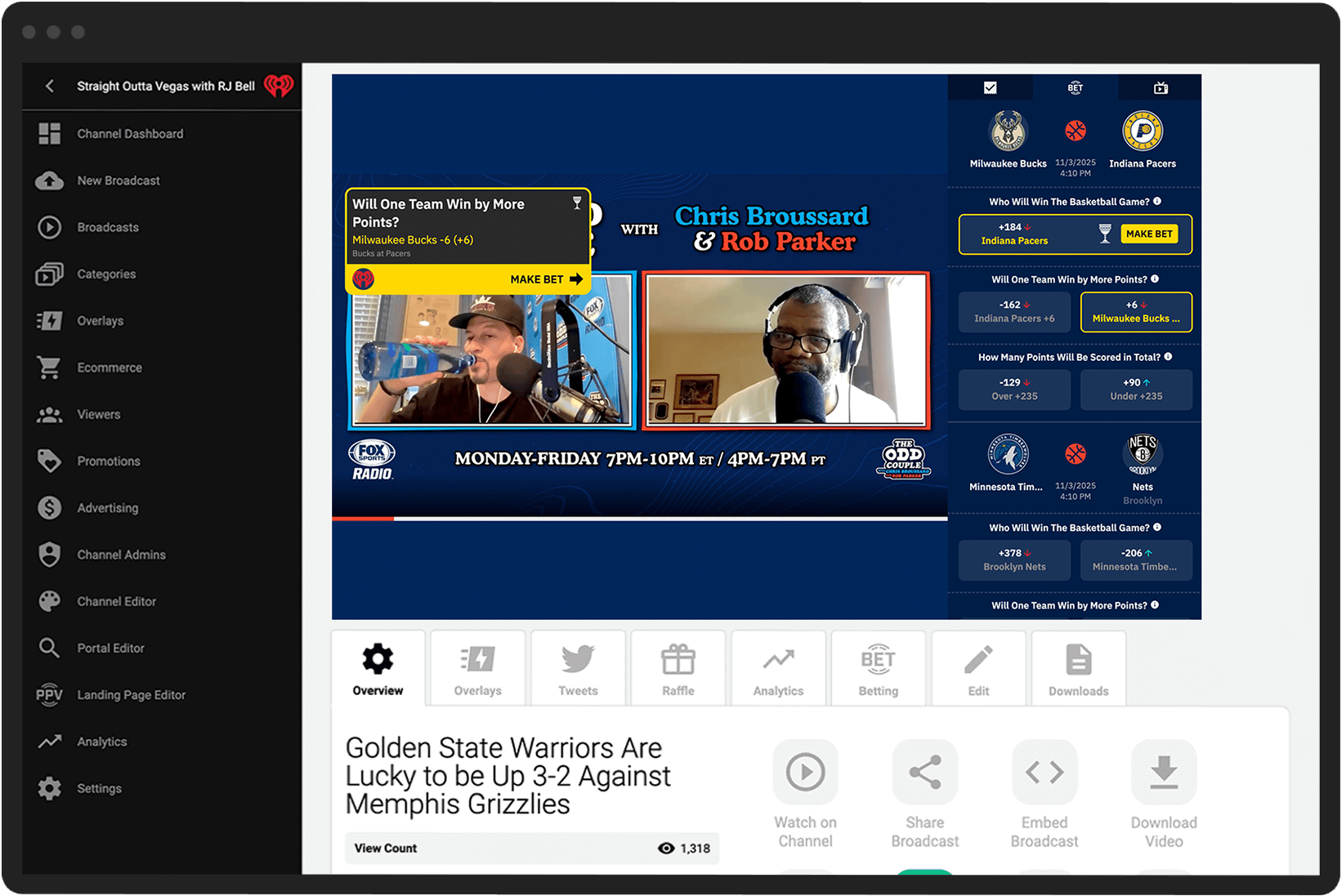 Moderate live chat, trigger bet picks, and feature social content during a live show from one easy-to-use interface