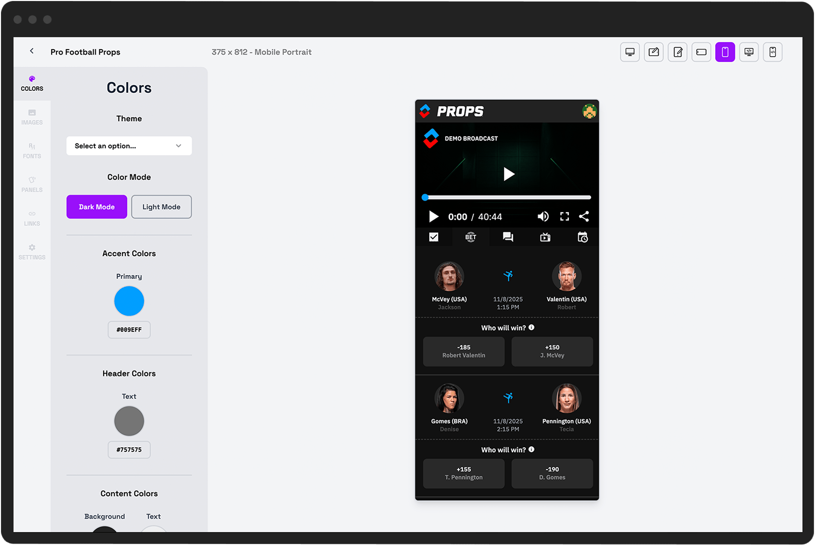 Easily embed PANDA's Watch & Bet player on your website, app, or editorial content, or use PANDA to power a fully branded video portal on your domain or subdomain. What's more, harness social by automatically restreaming your content from PANDA to multiple platforms at once.
